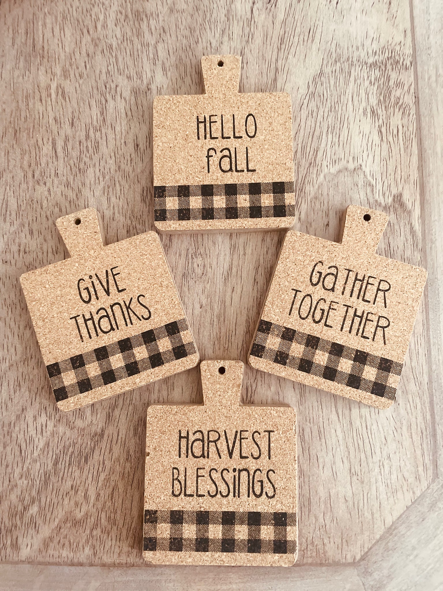 Protect the surface when burning your candles with our super cute fall candle Coasters!! Perfect Accent to any space!